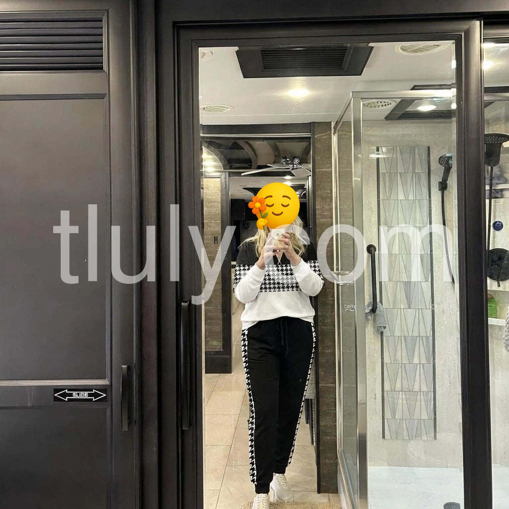Unique Houndstooth Print Long Sleeve Two Piece Set