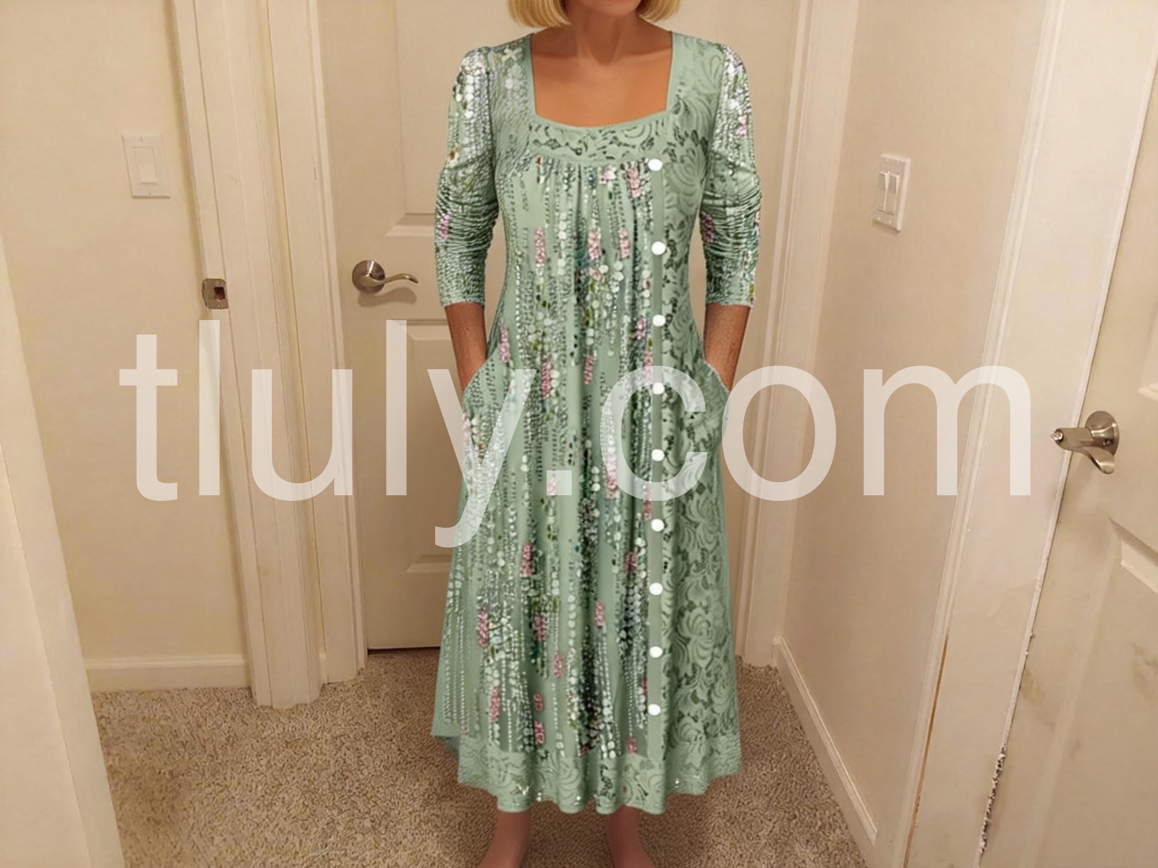 Style# 1372212Imagine effortless elegance that turns heads at every glance. This fresh green midi dress captures modern sophistication with its architectural square neckline that frames the collarbone beautifully, paired with graceful long sleeves for refined polish. The A-line silhouette flows with understated grace, while the luxurious rayon-elastane blend moves like silk against your skin—stretchy enough for all-day comfort, yet structured enough to maintain its impeccable shape. Practical side pockets add a touch of everyday luxury, while the midi length strikes the perfect balance between timeless and contemporary. Whether you're navigating the office, attending weekend brunches, or stepping into evening plans, this dress adapts seamlessly to your lifestyle. Machine washable for effortless care. Discover the dress that makes you feel as good as you look.
