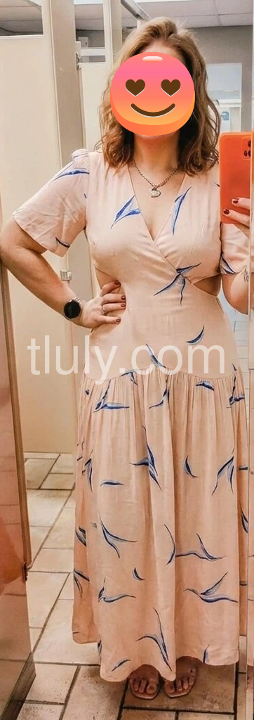 If there’s only one new item you buy this season, make it this bombshell dress. The head-turning maxi dress printed with feathery blue leaves is fashioned with sexy trimmed cutouts and seam at the hips that create soft gathering and an A-line shape. It’s perfect for date nights and beach days.