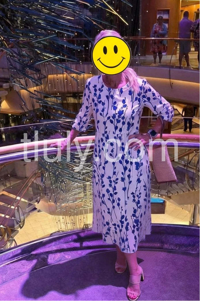 This dress is absolutely stunning! The blue floral pattern on the white background is so refreshing and perfect for a seaside vacation. The fabric feels light and comfortable, making it ideal for summer days. I received so many compliments. Highly recommend!