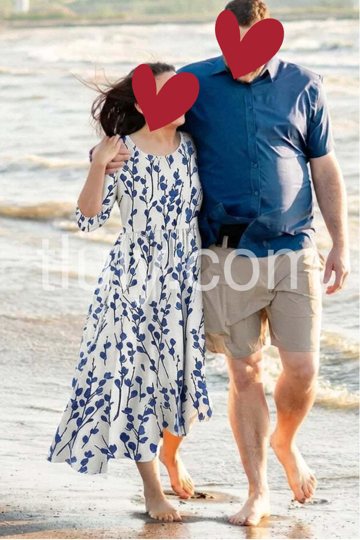 Embrace the serenity of seaside living in this Coastal Blue Botanical Print Midi Dress, a dreamy and elegant piece that captures the essence of Mediterranean charm. Crafted from lightweight, breathable fabric—likely cotton or linen blend—this midi dress features a crisp white base adorned with a delicate all-over print of navy blue leafy vines and botanical sprigs, evoking the beauty of coastal flora. The relaxed A-line silhouette flatters every figure, while the high waist and gentle gathering create a soft, flowing shape that moves gracefully with you. Short sleeves and a round neckline offer timeless comfort and ease, perfect for warm days by the sea. Designed with functional side pockets, it’s both stylish and practical—ideal for strolls through whitewashed villages, beachside brunches, or summer vacations.