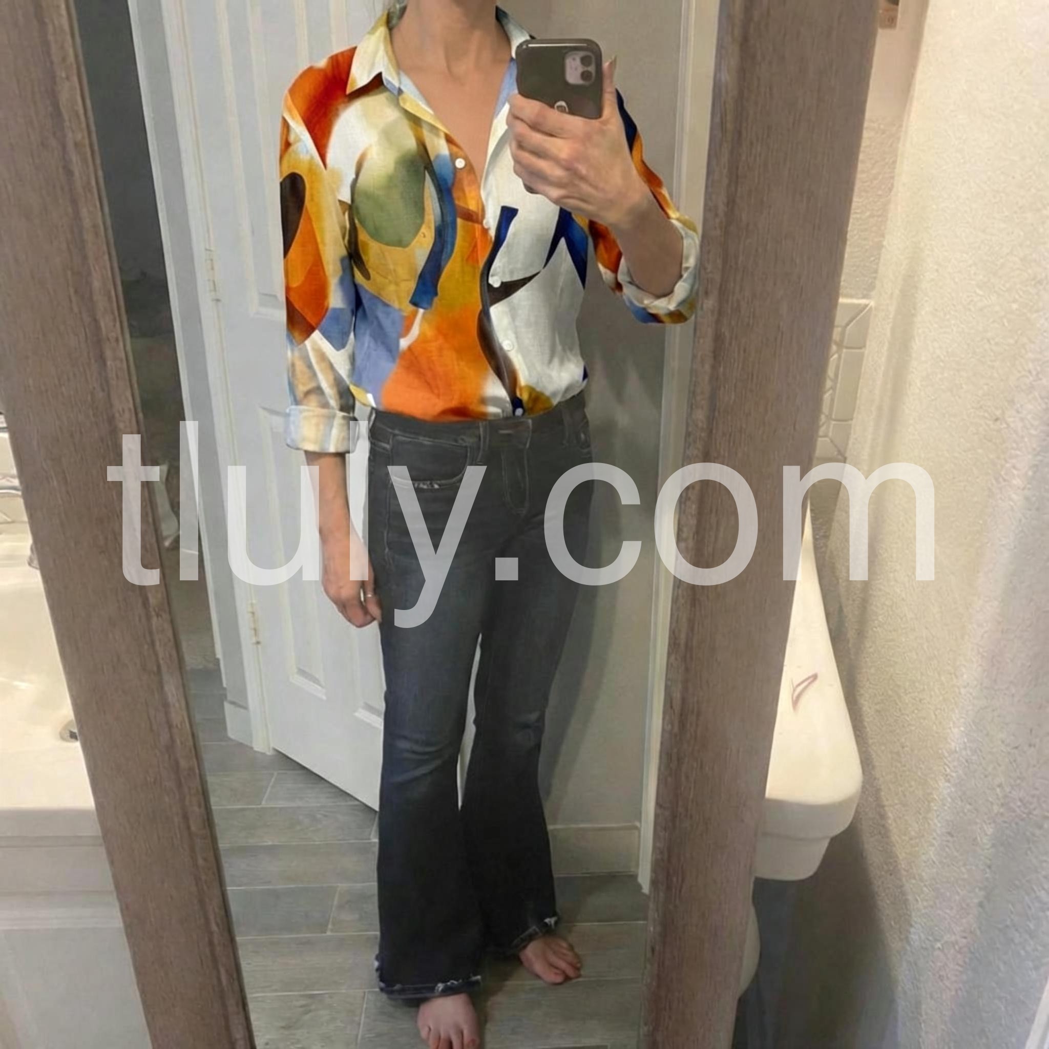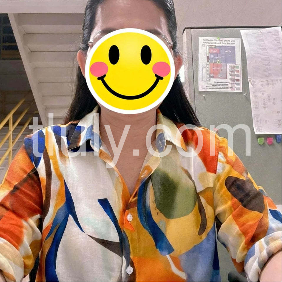 Style# 1544381Make a splash in this Bold Abstract Print Button Down Blouse, a striking piece that turns heads with its dynamic, painterly design. Crafted from lightweight, breathable fabric—likely linen or rayon blend—this long-sleeve blouse features a vivid abstract print in rich shades of orange, navy blue, mustard yellow, olive green, and cream, evoking the energy of modern art. The relaxed fit and deep V-neckline offer a flattering silhouette, while the classic button-down front adds structure and ease. With rolled-up sleeves and a slightly curved hem, it’s perfect for pairing with denim jeans, white pants, or flowy skirts. Ideal for beach vacations, resort wear, or casual summer days, this blouse captures the essence of free-spirited fashion with a touch of artistic flair. Styled here against a sunlit beach backdrop, it exudes confidence and effortless style—just like the bold, vibrant looks found on Lulus.com. A must-have for anyone who loves unique prints, expressive colors, and fashion that feels like wearable art. Let this blouse be your statement piece for sunny adventures and stylish moments alike.