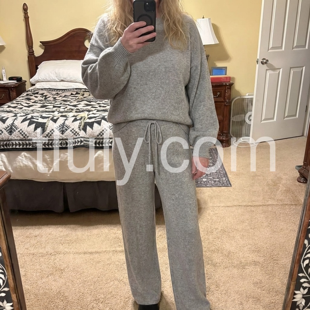 This lounge set provides total comfort and style. The classic grey colour and plain design will ensure you look great while the long sleeves and ultra-soft fabric keep you warm and cozy. Perfect for lounging around the house or running errands.