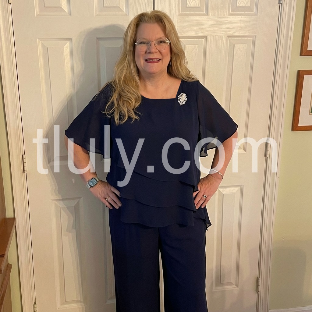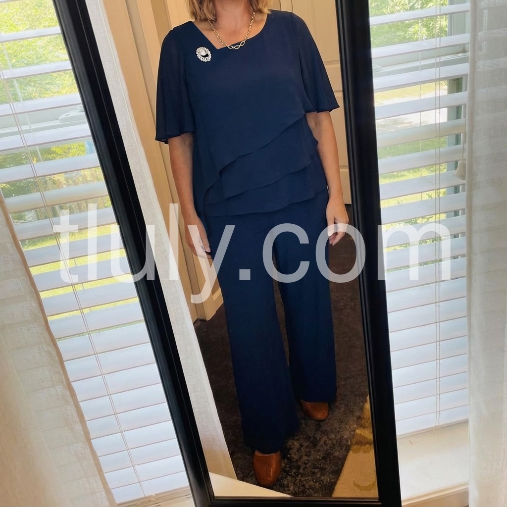 This coordinated set features a flowy layered top with an asymmetrical hem and matching wide-leg pants. Crafted from smooth, comfortable fabric perfect for warm days. The clean lines and classic navy hue offer timeless style. Ideal for casual outings or relaxed events. Effortlessly chic and easy to wear.