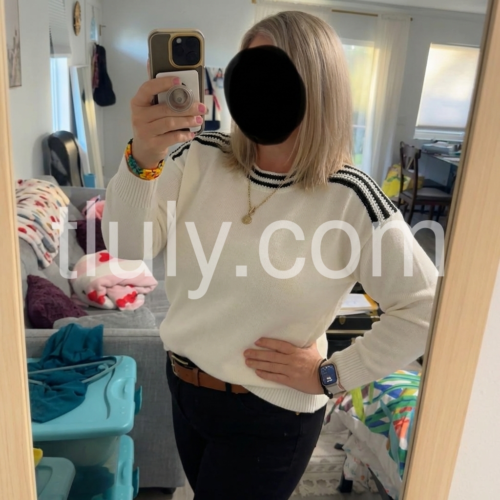 Ivory Color Block Round Neck Sweater