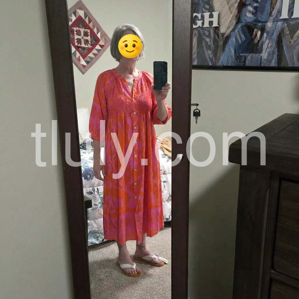 This super-glam hot pink and orange print midi dress is all you need to make a style impression, featuring a round v-neck collar, buttons down the front, and a shirred flattering top. Three-quarter length sleeves provide coverage and versatility to this everyday sophisticated blouse dress. Machine wash cold tumble dry low to medium heat. Iron if needed or lay flat to dry.