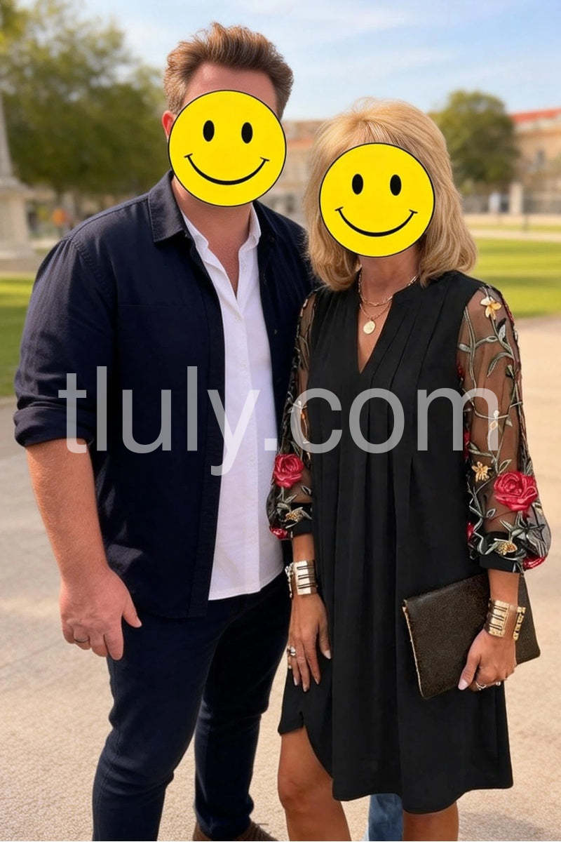 Elegant V-Neck Sheer Sleeve Mini Dress