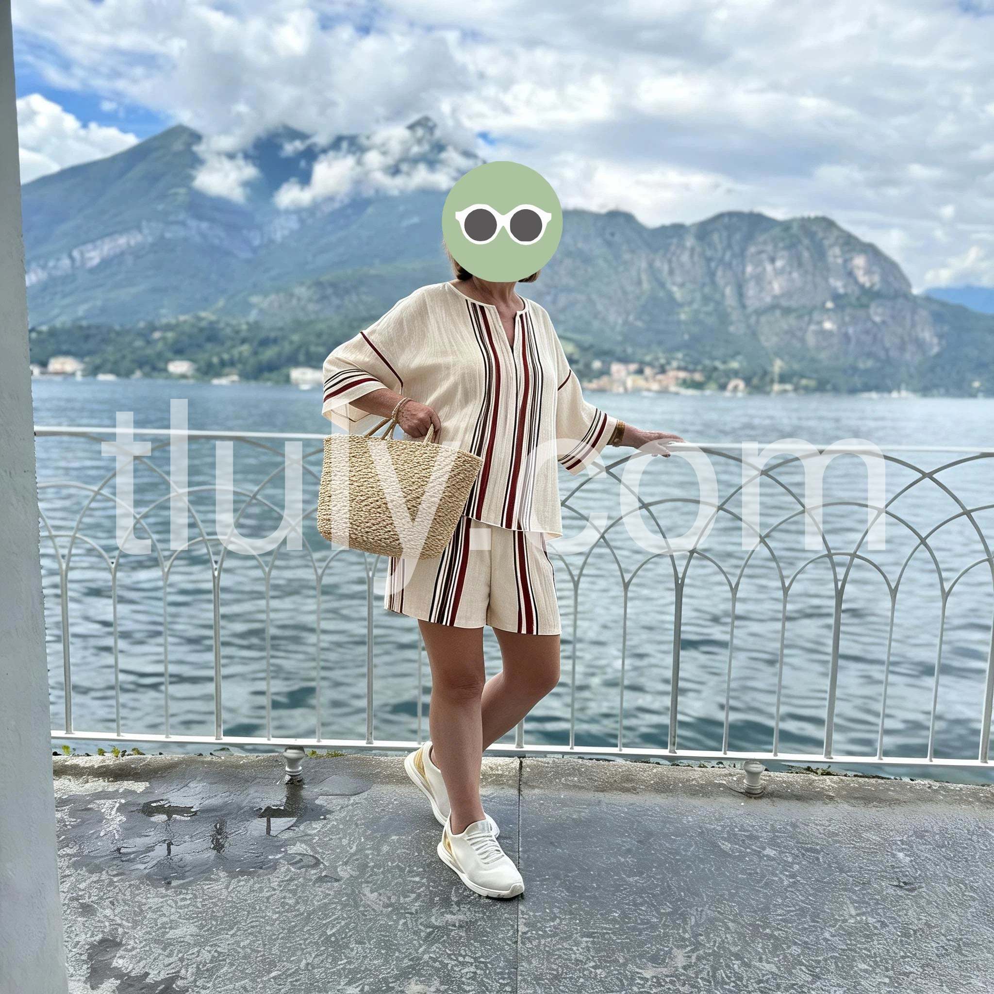 This sophisticated two-piece set features a flattering V-neck design complemented by classic striped patterns. Engineered for optimal comfort without sacrificing style, the coordinated pieces offer versatile styling options for various occasions. The thoughtfully constructed silhouette provides a polished appearance while maintaining ease of movement throughout the day.