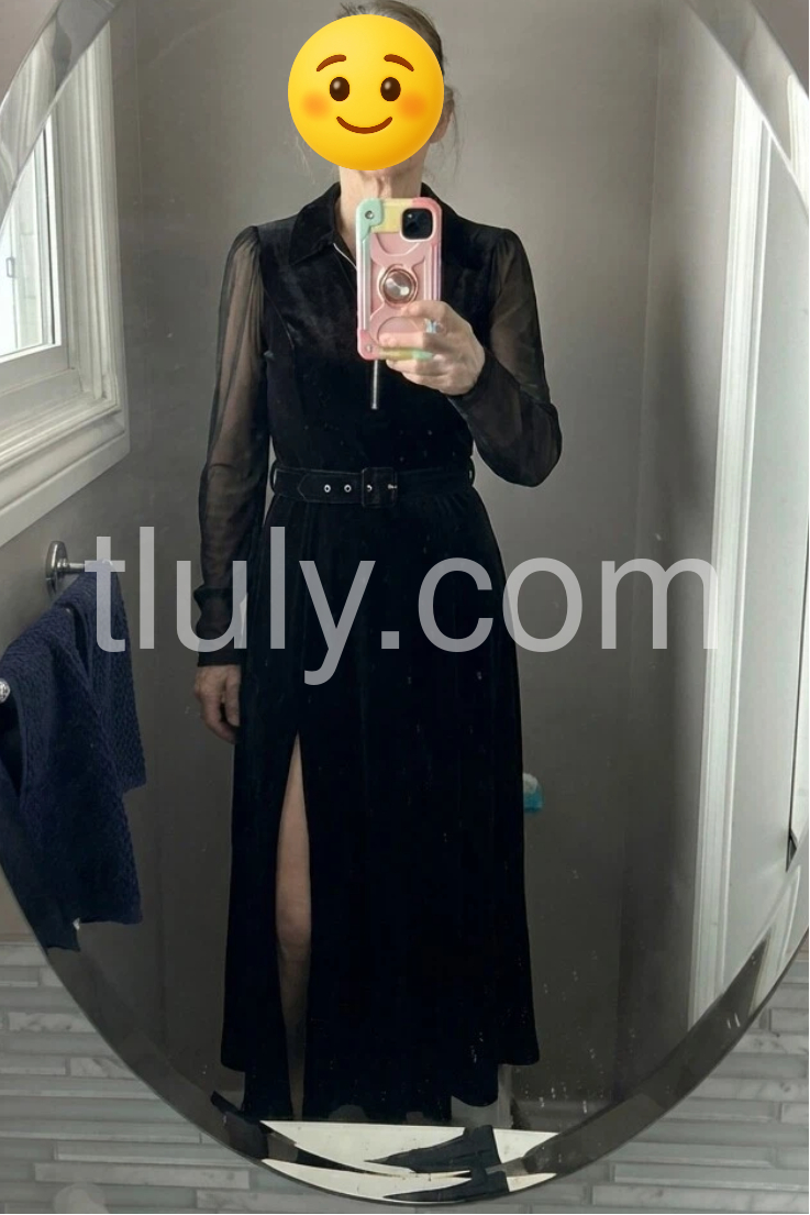 Elevate your wardrobe with this Black Velvet Zip Front Long Sleeve Maxi Dress, expertly designed for timeless elegance. Crafted from luxurious velvet, it offers a soft, rich texture that drapes beautifully. The front zip adds a modern edge and allows adjustable styling, while long sleeves provide a sophisticated silhouette suitable for evening occasions. This maxi-length dress combines comfort with refined style, making it a versatile staple for any formal event or upscale gathering.
