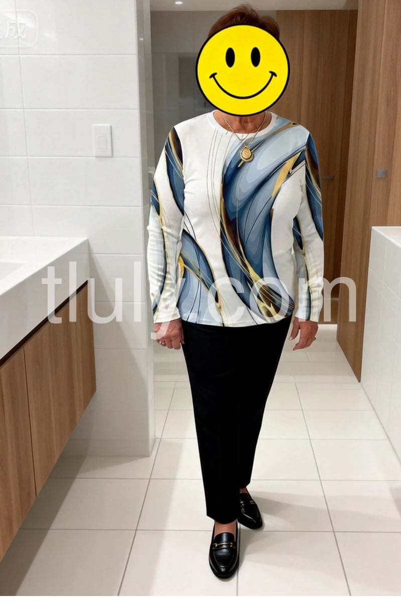 Stunning Geometric Print Round Neck Long Sleeve Top