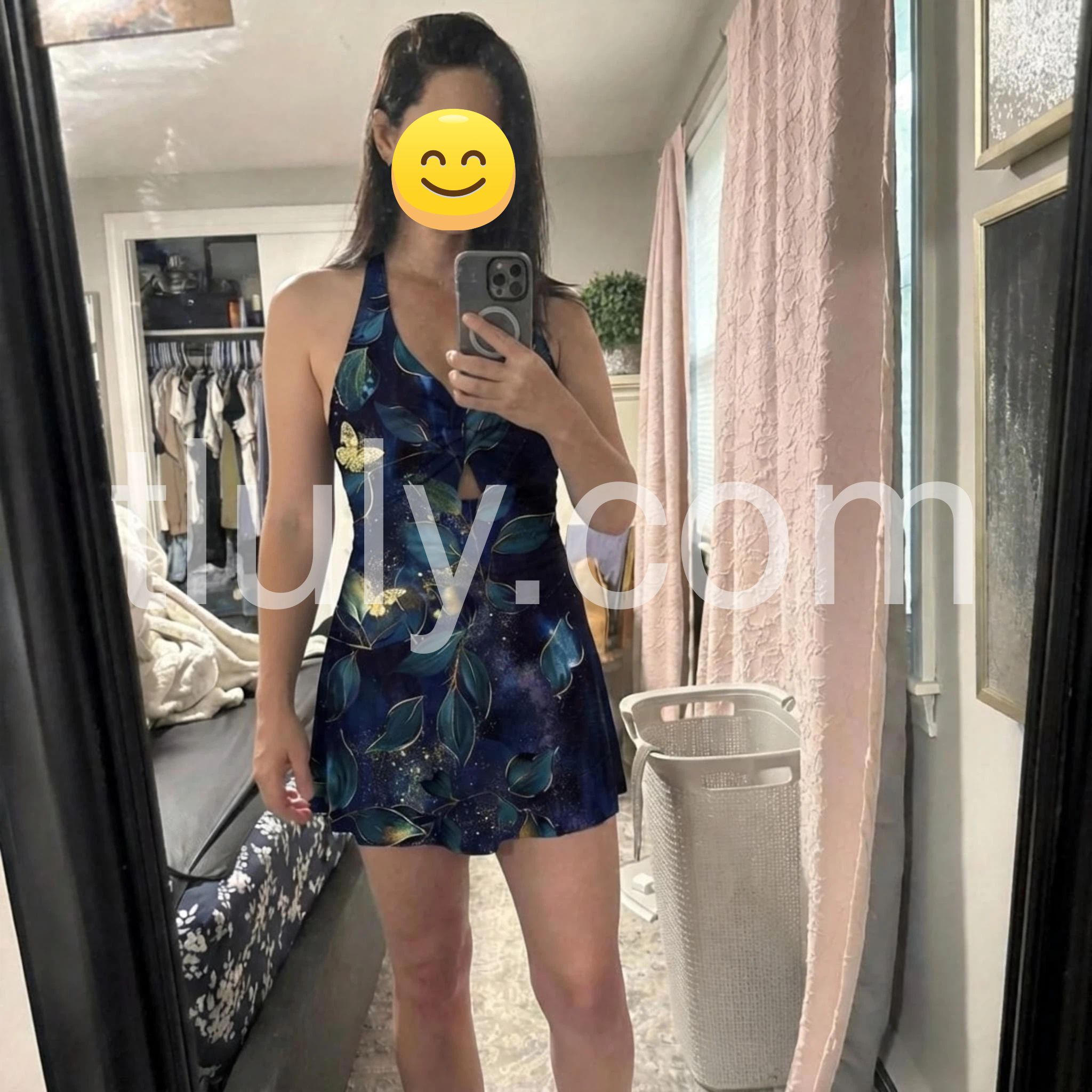 Really pretty swimsuit. Comfortable. Nice coverage. I Love it. It fits just as it should. The color was great, the tummy control was just enough without cutting you in two . Looks really good on and covers the rear end just enough.